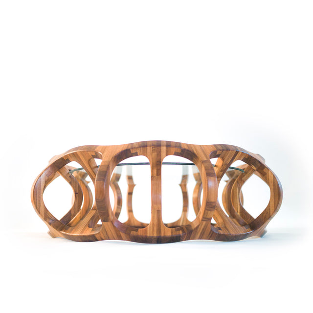 The creation of TORO G10 required meticulous investigation into various geometric figures and modular properties, culminating in an intricate yet elegantly simple structure that utilises only three types of solid wood modules. These modules are crafted from certified tzalam wood and are manually assembled, polished, and finished with natural oil to ensure both beauty and durability.